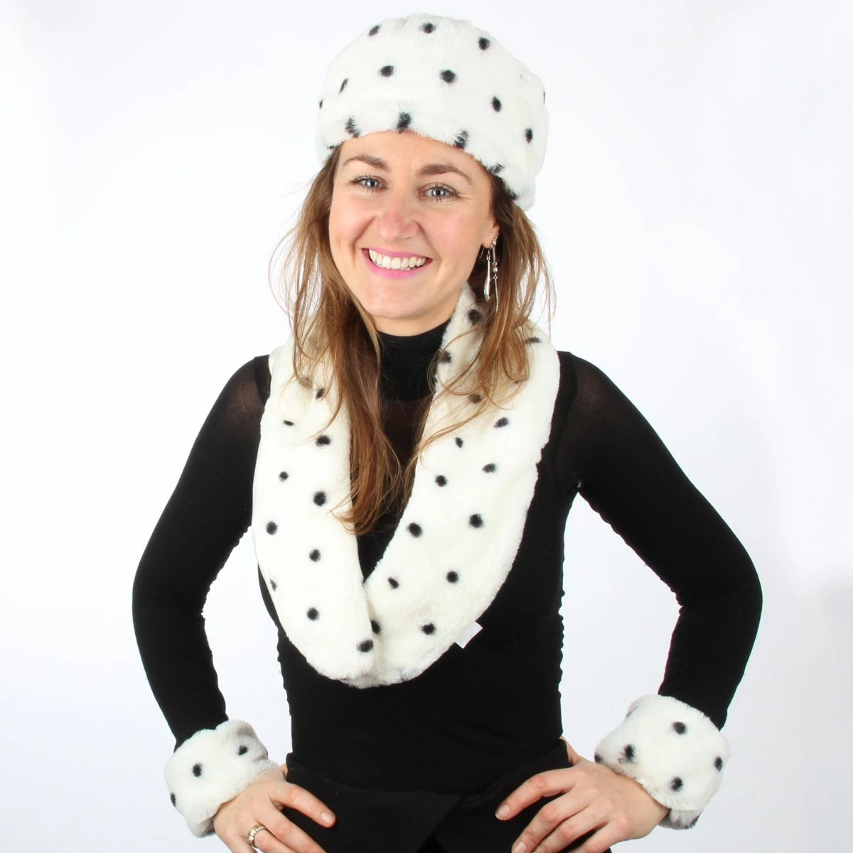 Prachtige dalmatiër manchetten van imitatiebont. Leuk te combineren met de dalmatiër bontmuts en sjaal.