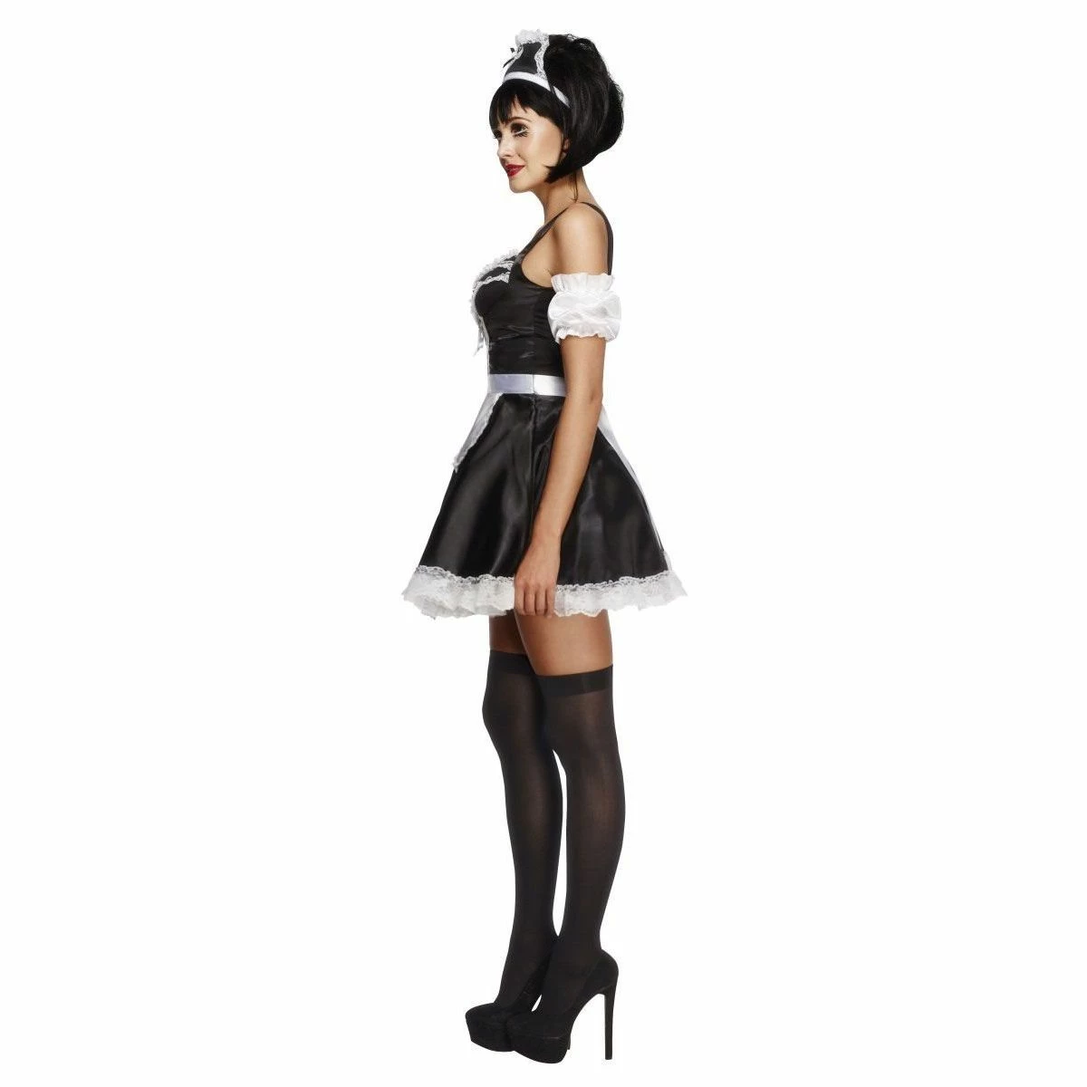 Het Franse kamermeisje kostuum bestaat uit een jurkje, haarband en mouwtjes.Â
