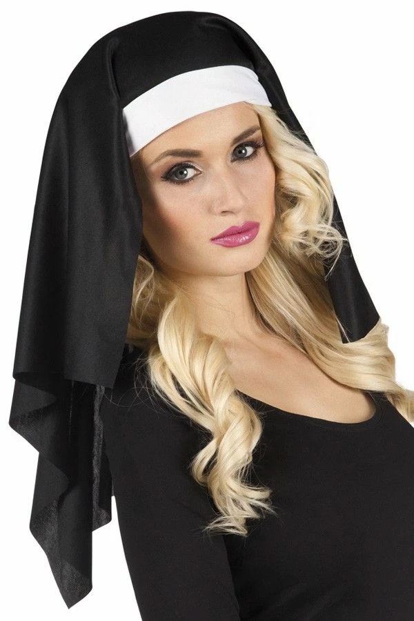 Zwarte nonnenkap om je nonkostuum compleet te maken.