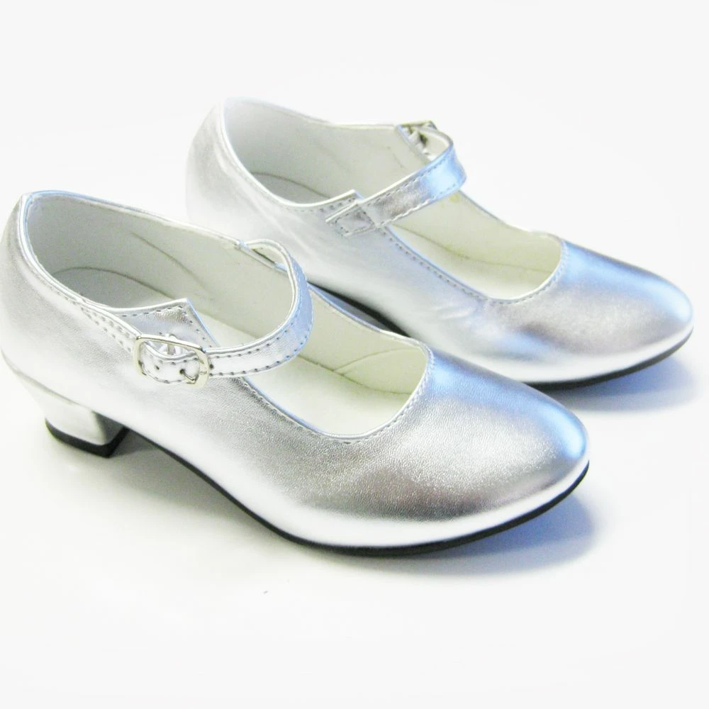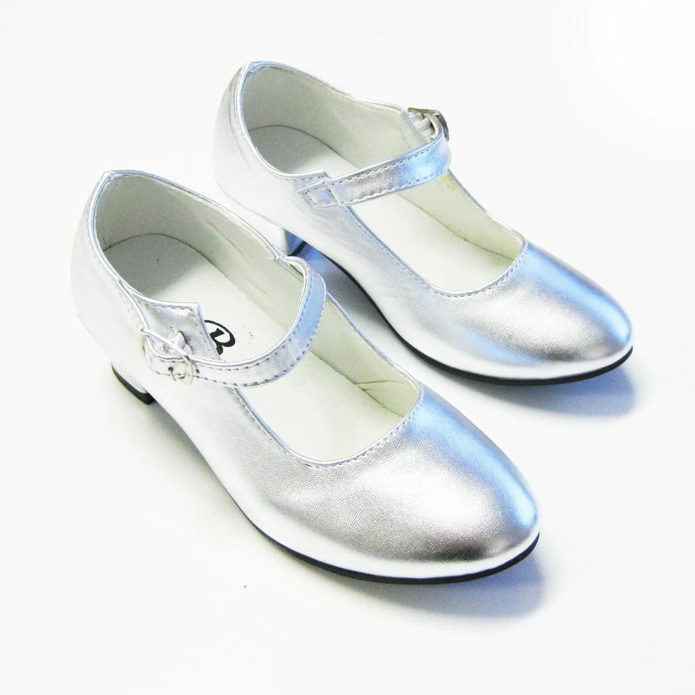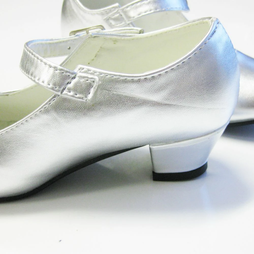 De schoen heeft een heel klein hakje en is voorzien van een gesp